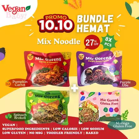 ![dealdisc [6pcs] BEST DEAL Disc 22% Vegan Baby Mie Goreng Sehat Rendah Kalori Vegetarian Mie Anak Tinggi Serat Non MSG Mie Sehat Anak](http://veganbaby.id/ecommerce/wp-content/uploads/2025/07/dealdisc-300x300.webp)