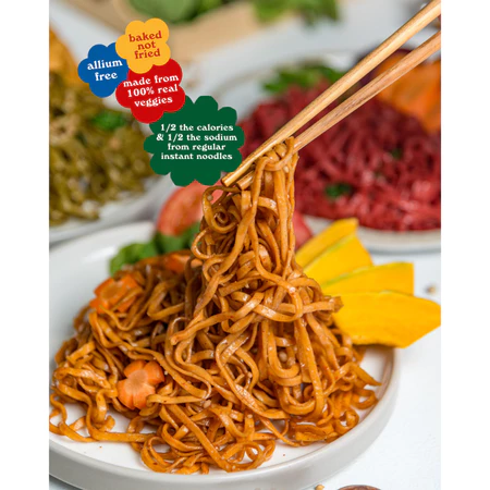 Isi 8 PCS bayam brokoli, wortel bit, ube ungu, & wortel pumpkin Ada kemungkinan Mie bisa remuk Informasi Produk Rendah Kalori (200kal), Kalori 1/2nya dari mie biasa, Rendah Sodium, Sodiumnya 1/2nya dari mie biasa Tinggi Serat Allium free Vegan & Vegetarian Friendly Dipanggang tidak digoreng Terbuat dari sayuran asli & superfood ingredients Low gluten (70% tepung singkong, 30% gandum) Tanpa MSG, pengawet & pewarna Aman untuk anak2 & ibu hamil Teksturnya lebih kenyal Rasanya tetep enak kayak mie biasa, sayurnya ga berasa!