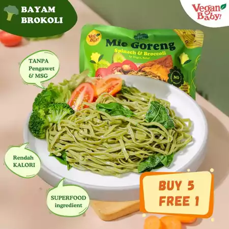 ![[Beli 5 FREE 1] Vegan Baby Mie Goreng Bayam Brokoli Vegan Noodle Sehat Rendah Kalori Tinggi Serat mpasi - Image 2](http://veganbaby.id/ecommerce/wp-content/uploads/2025/07/5mie1.webp)