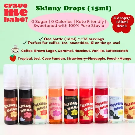 (New!) 15ml SKINNY DROPS | Sugar Free Drops 0 SUGAR 0 CALORIES | Drink & Coffee Enhancer Tetes | Sweetened with Stevia | Keto Friendly